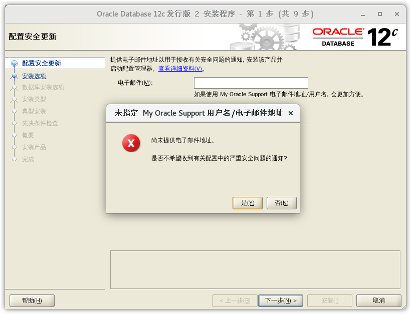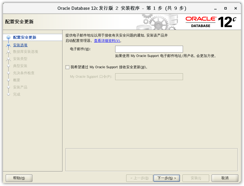 我希望通过 My Oracle Support 接收安全更新。,点击下一步: