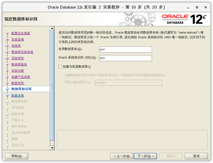 - 全局数据库名和 SID 设置,取消勾选