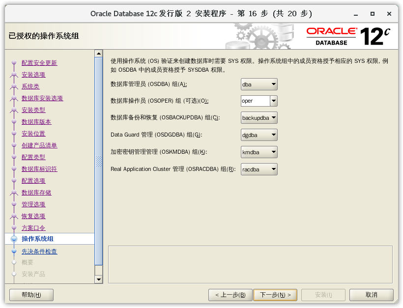 下面是安装 Oracle 12c 数据库对系统的一些关键要求: