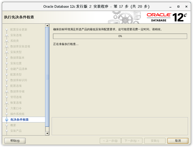- 这里会对数据库的安装先决条件进行检查,如果不通过,则会列出所有不满足的条件,如果通过,则会自动进入下一步: