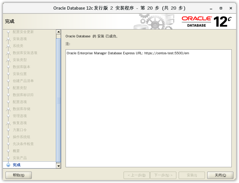 - 到这里数据库就安装好了,而且监听和数据库都已经帮我们配置好了,最后点击